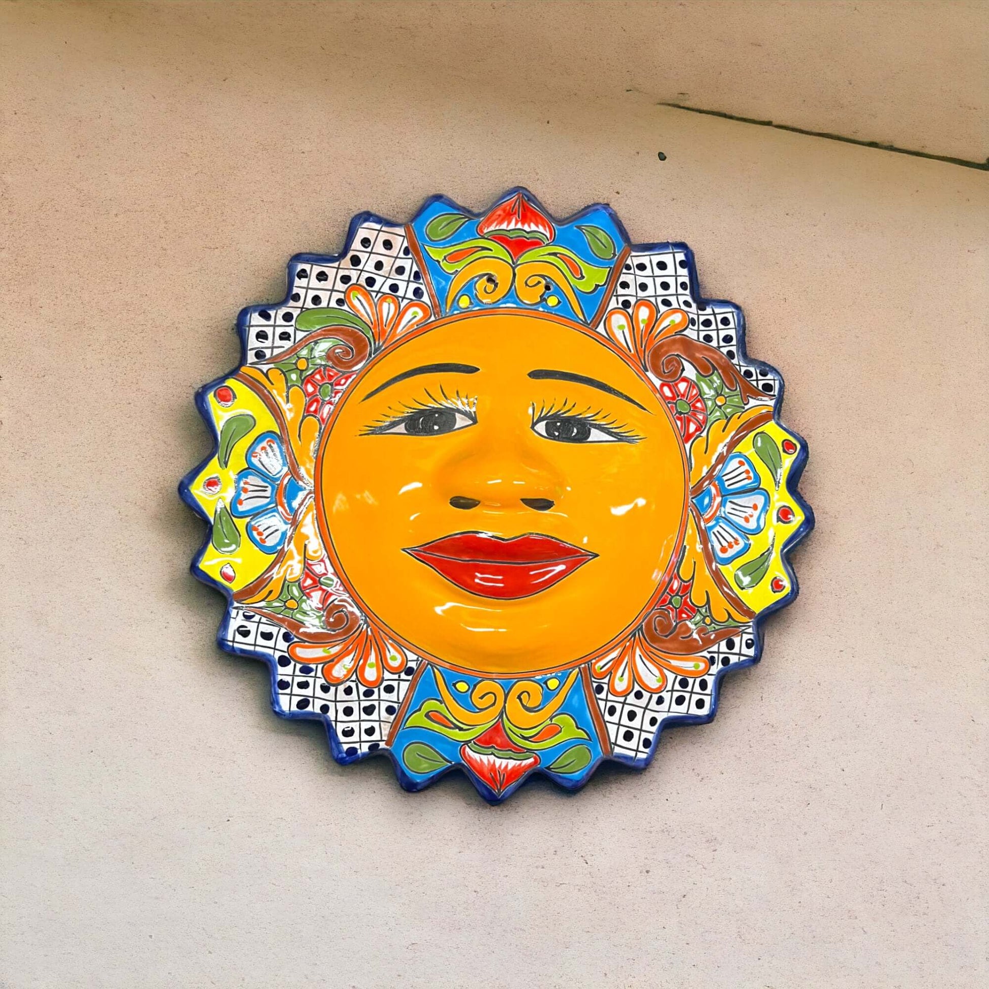 UNIQUE: Each Talavera Sun Wall Art is handmade and one-of-a-kind, with variations in size and design. We select products at random, but if you have a specific preference, feel free to message us, and we will do our best to accommodate your request.