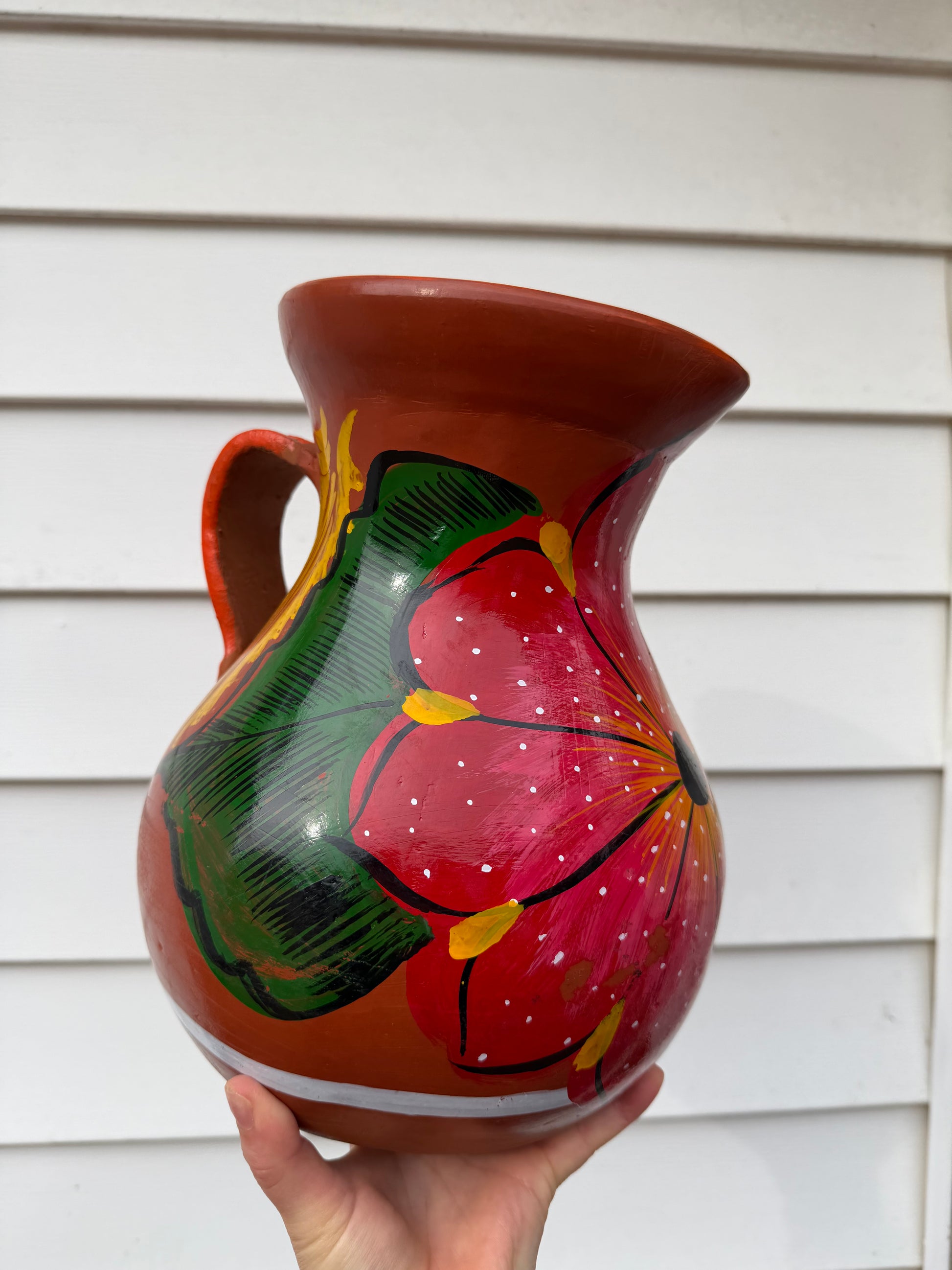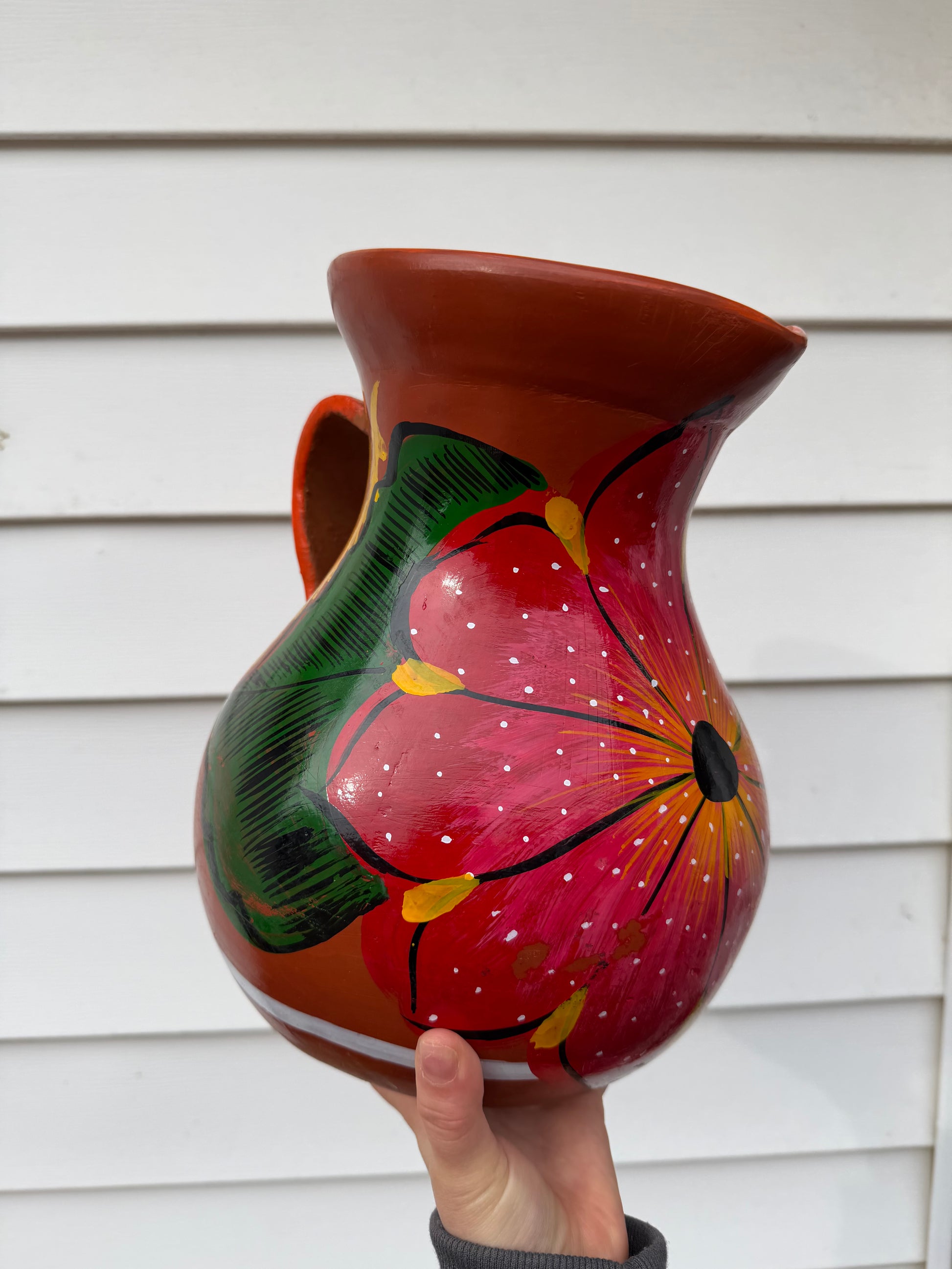 Elevate your home with this stunning hand-painted pitcher, featuring a bold floral design. Each piece is created by skilled Mexican artisans, combining a modern color palette with traditional hand-painted artistry.