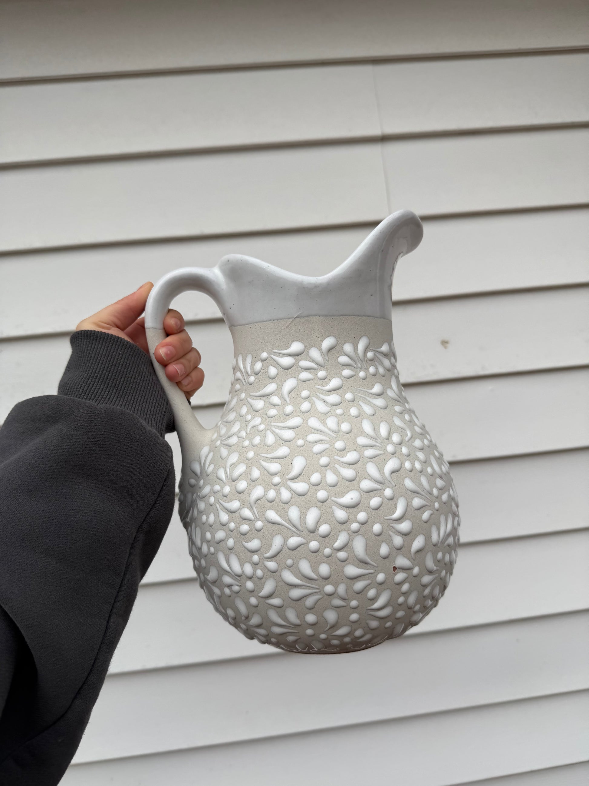 Elevate your home with this stunning hand-painted ceramic pitcher, featuring a bold floral design. Each piece is created by skilled Mexican artisans, combining a modern color palette with traditional hand-painted artistry.