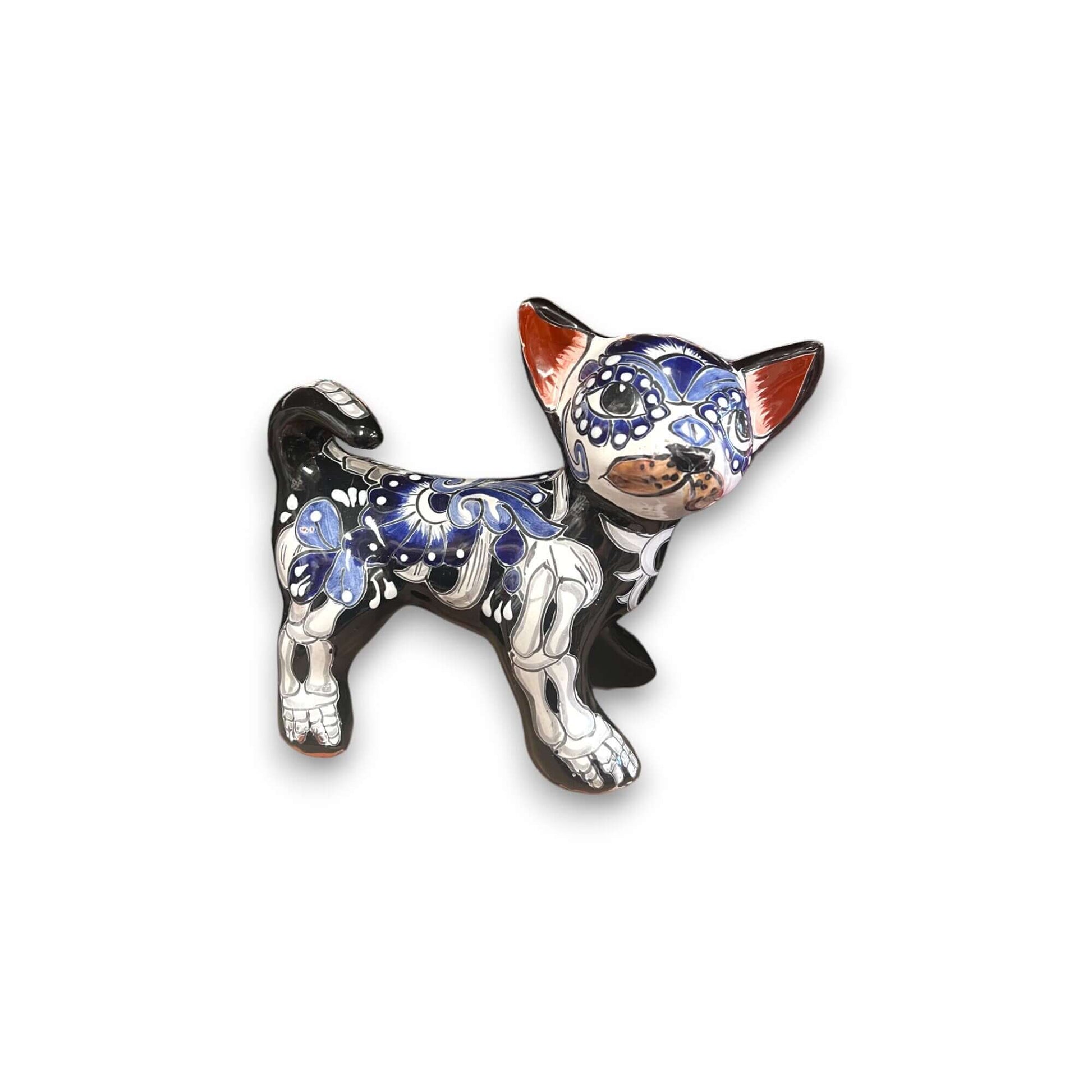 Handcrafted Talavera Chihuahua Statue | Medium Day of the Dead Pottery Art