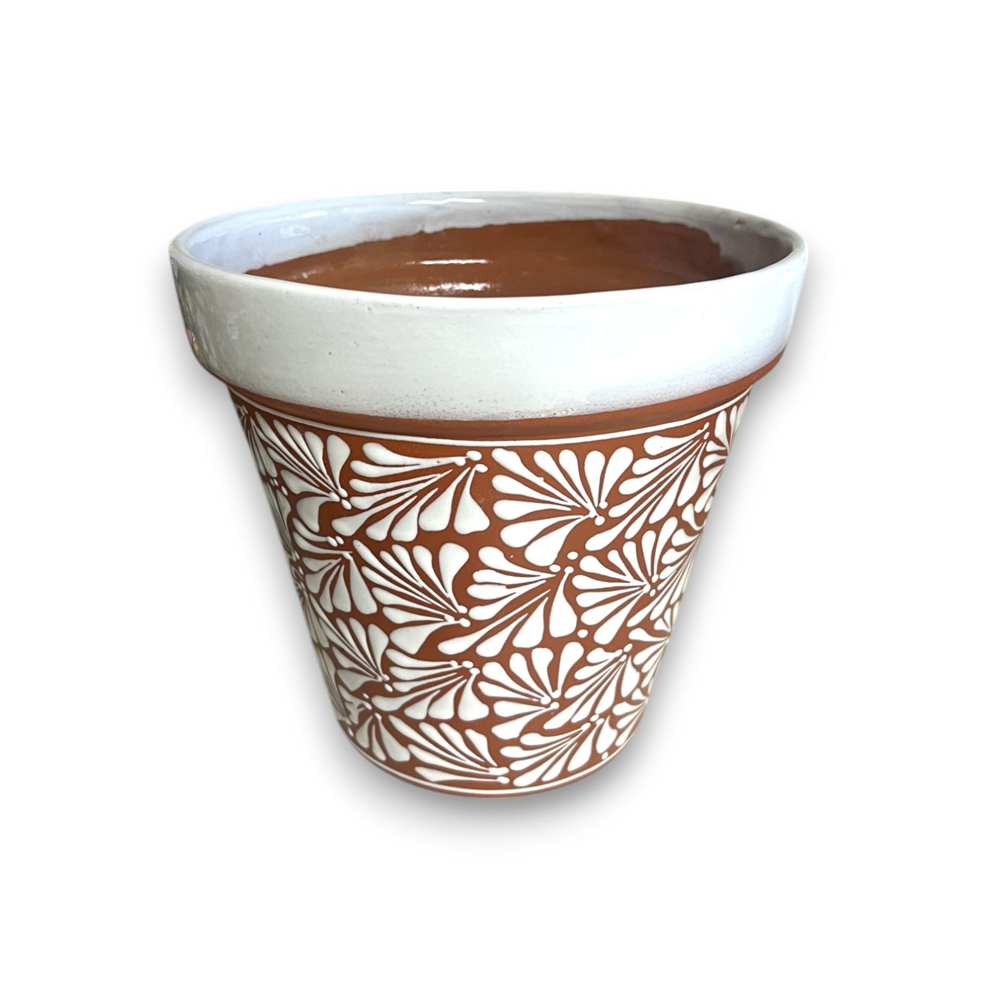 Set of 3 Talavera Flower Pots | Brown & White Terracotta Planters