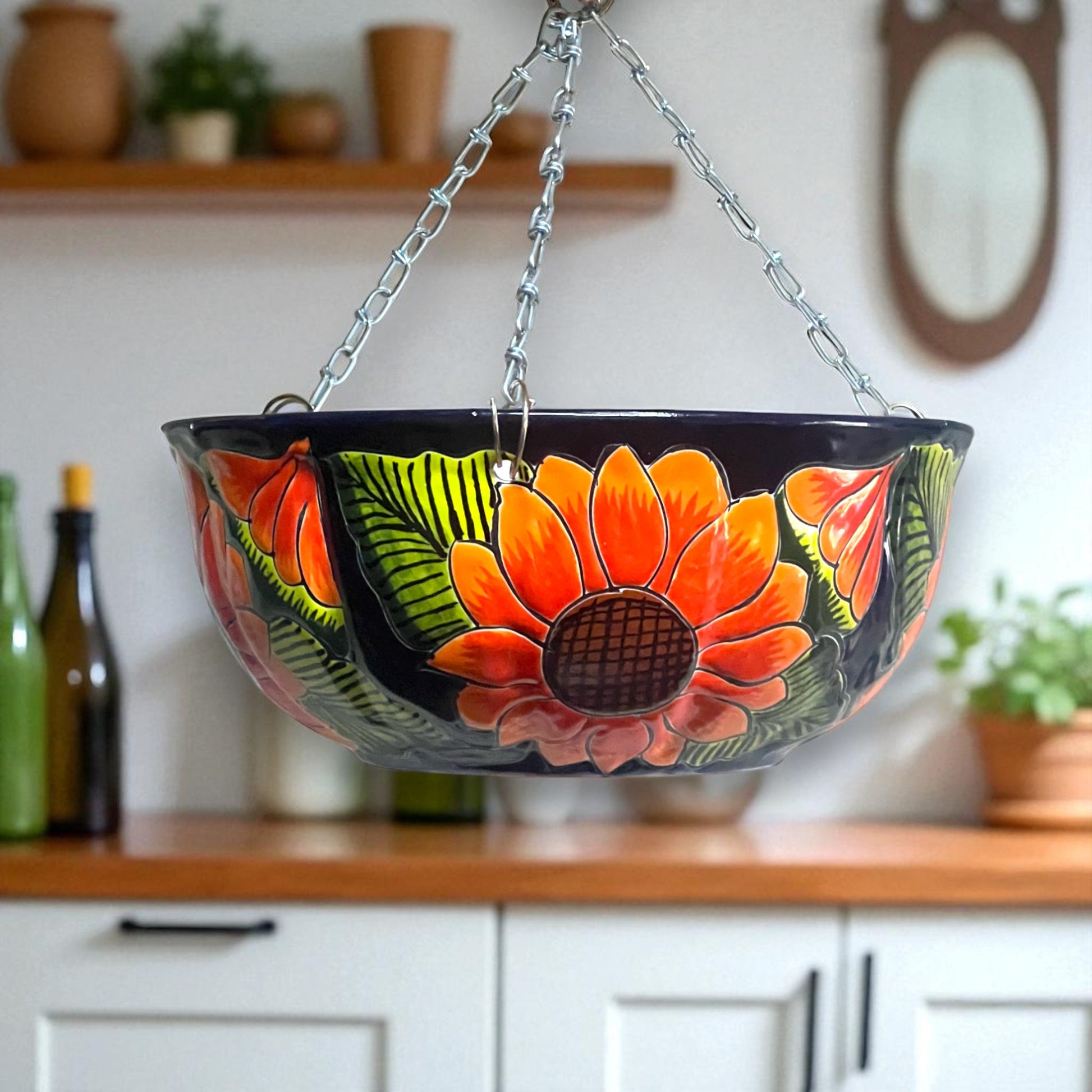 Vibrant Talavera Sunflower Hanging Planter | Artisan Pot