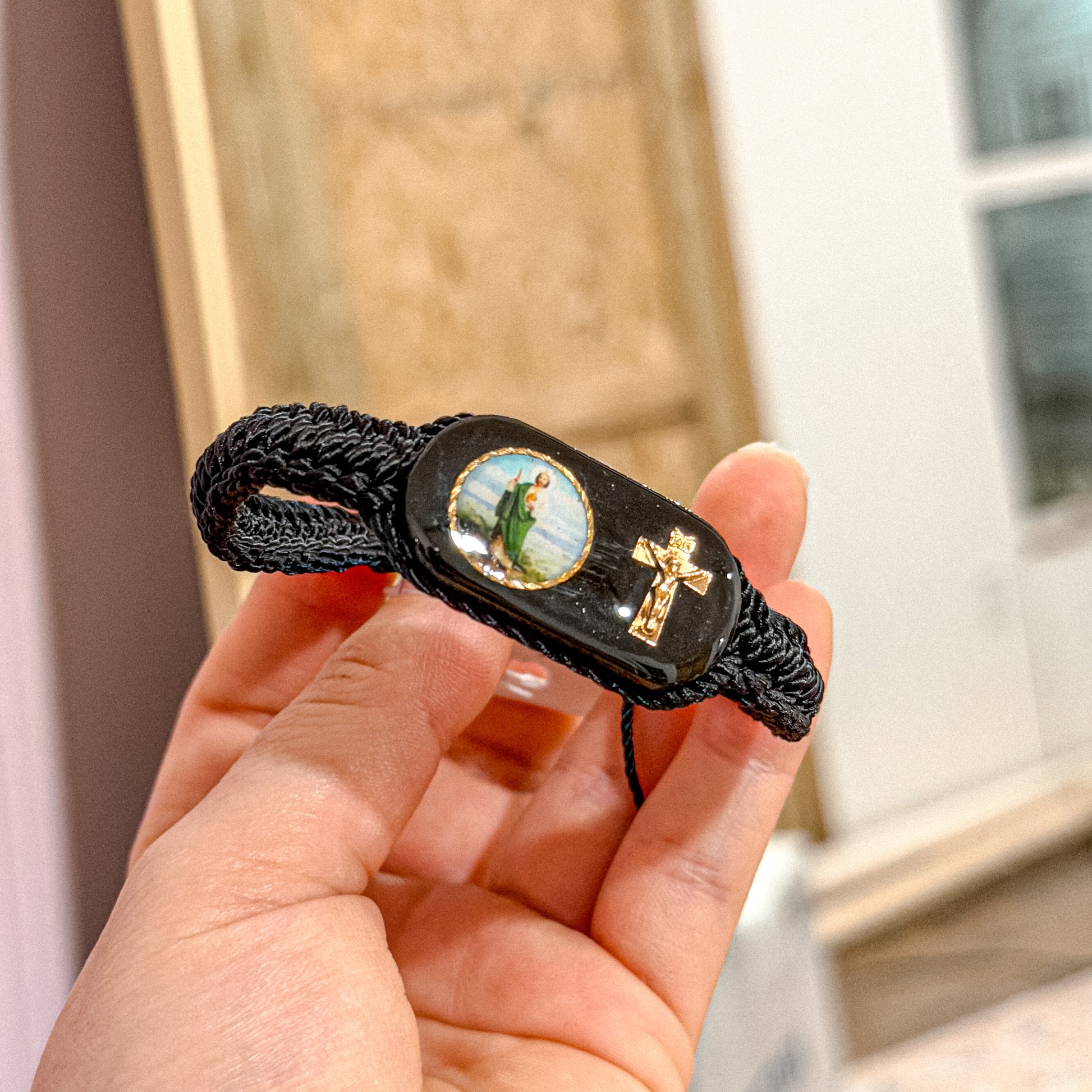 • Black cord bracelet with San Judas charm