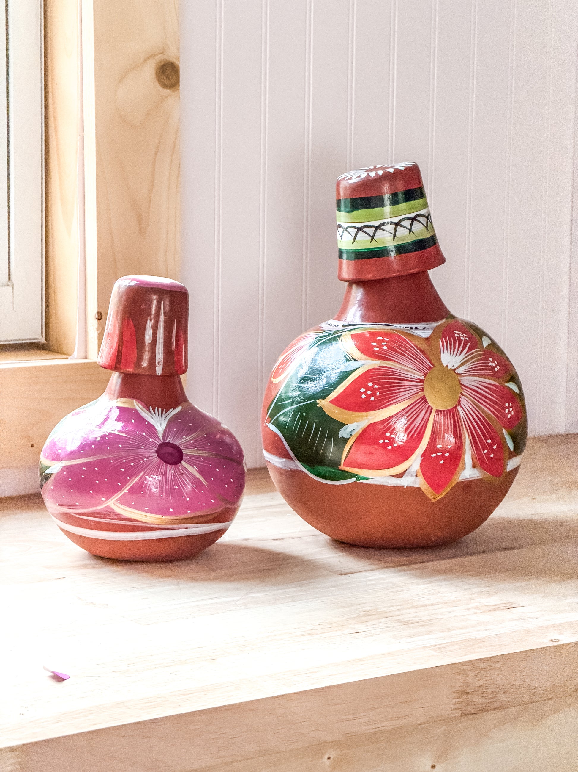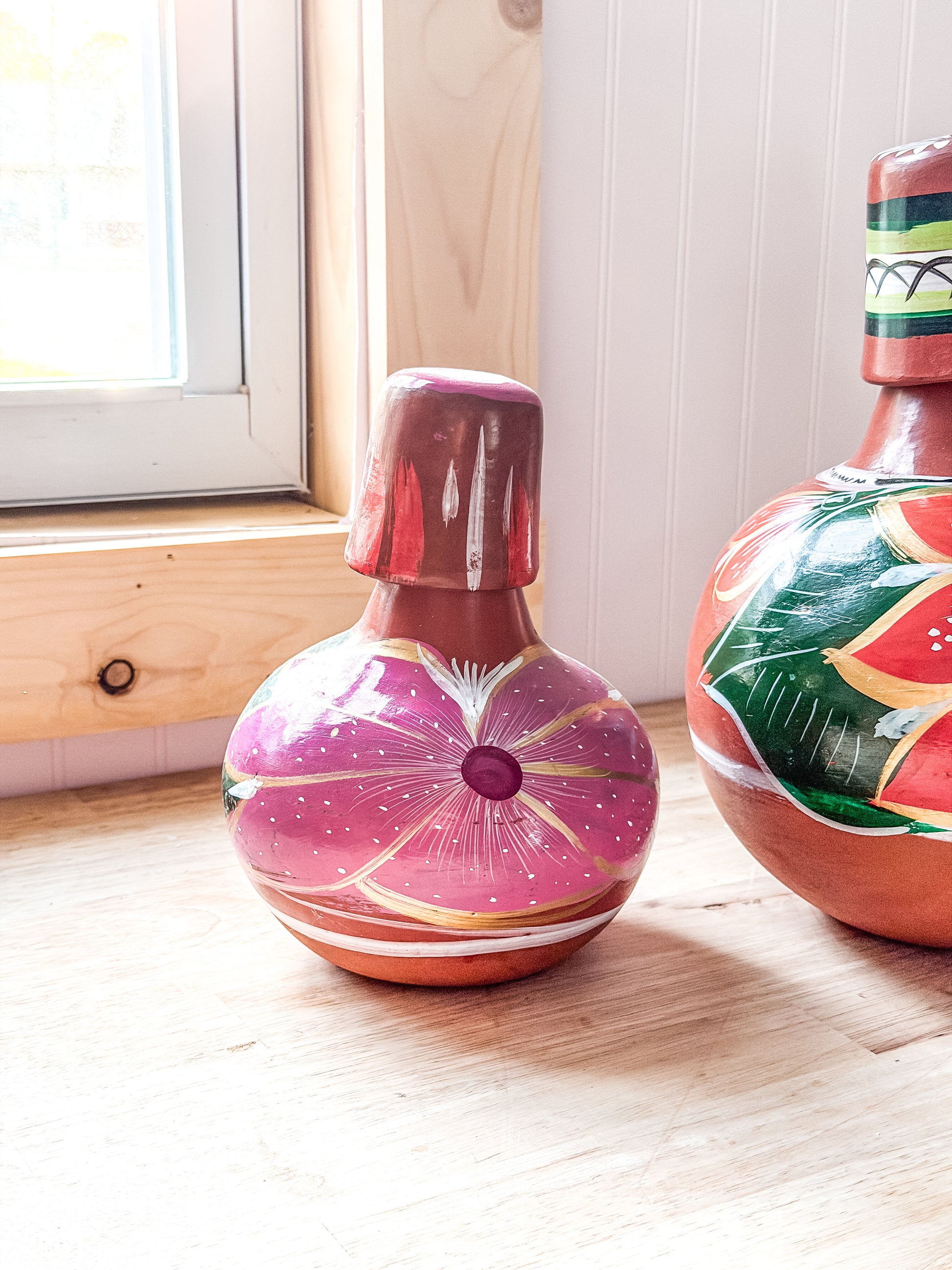 Bring tradition and beauty into your home with this stunning barro floral cántaro with matching cup, handcrafted and hand-painted by artisans in Mexico 🇲🇽