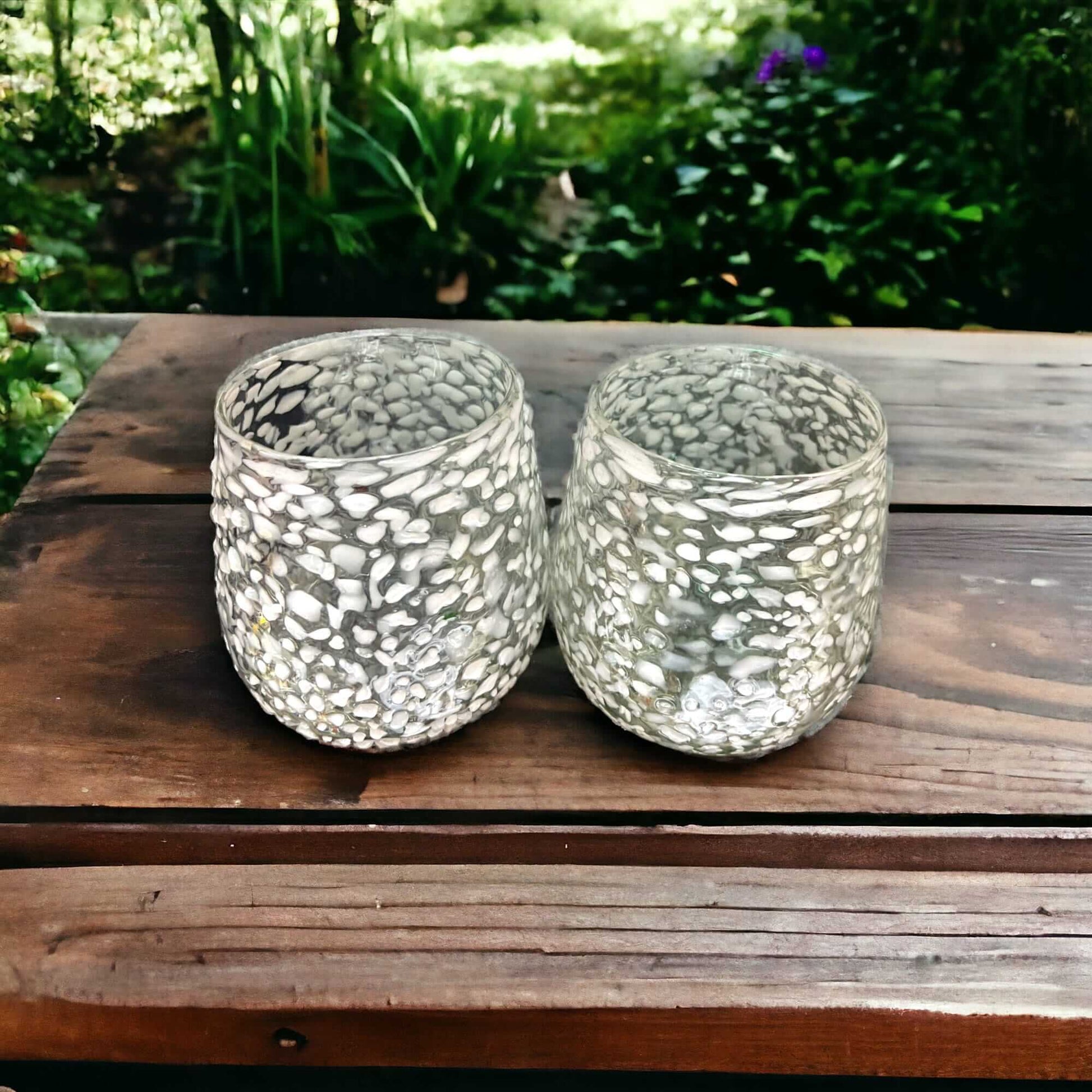 White Pebbled Wine Glass | Hand-Blown Mexican Stemless Glassware